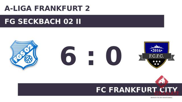 Durch einen Elfmeter von Christopher Schelhorn gelang der FG Seckbach 02 II das Führungstor. Während einige mit ihren Gedanken bereits in der Pause waren, nutzte Philipp Schmitt seine Chance und schoss das 2:0 (43.) für die FG Seckbach 02 II. Mit der Führung für die FG Seckbach 02 II ging es in die Kabine. In der Halbzeit nahm die FG Seckbach 02 II gleich zwei Wechsel vor. Fortan standen Niklas von Nathusius und Maikel Timo Fuhrmann für Johannes Stuebbe und Dominik Curkovic auf dem Platz. Für ruhige Verhältnisse sorgte Adrian Paul Sumanariu, als er das 3:0 für die FG Seckbach 02 II besorgte (47.). Für das 4:0 der FG Seckbach 02 II sorgte Schelhorn, der in Minute 70 zur Stelle war. K.A. k.A. überwand den gegnerischen Schlussmann zum 5:0 für die FG Seckbach 02 II (78.). Sumanariu stellte schließlich in der 82. Minute den 6:0-Sieg für die FG Seckbach 02 II sicher. Am Ende kam die FG Seckbach 02 II gegen den FC Frankfurt City zu einem verdienten Sieg.