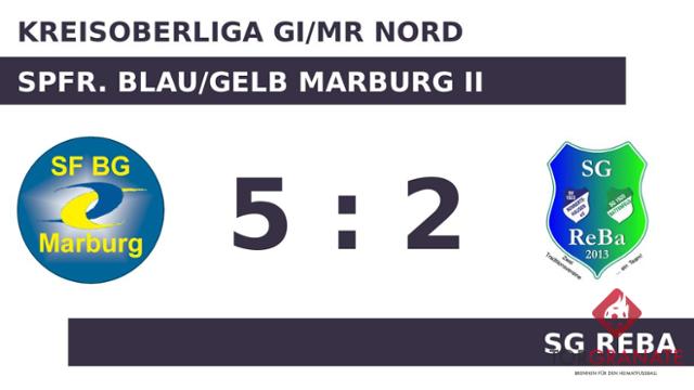 Die SG ReBa geriet schon in der siebten Minute in Rückstand, als Johannes Madsack das schnelle 1:0 für die SF/BG Marburg II erzielte. Oliver Petter schockte die Spfr. Blau/Gelb Marburg II und drehte die Partie mit seinem Doppelpack für die SG ReBa (16./29.). Zur Pause wusste die SG ReBa eine hauchdünne Führung auf der Habenseite. Bei der SF/BG Marburg II kam zu Beginn der zweiten Hälfte Alexander Mueller für Jan Obermann in die Partie. Nikola Gaik trug sich in der 61. Spielminute in die Torschützenliste ein. Dass die Spfr. Blau/Gelb Marburg II in der Schlussphase auf den Sieg hoffte, war das Verdienst von Hendrik Culmsee, der in der 81. Minute zur Stelle war. In der 67. Minute stellte die SG ReBa personell um: Per Doppelwechsel kamen Nils Weisheit und Francesco Deiana auf den Platz und ersetzten Nils Hoffmann und Luca Deiana. Ehe der Abpfiff ertönte, war es Jakob Teuteberg, der das 5:2 aus Sicht der SF/BG Marburg II perfekt machte (88.). Am Schluss gewann die Spfr. Blau/Gelb Marburg II gegen die SG ReBa.