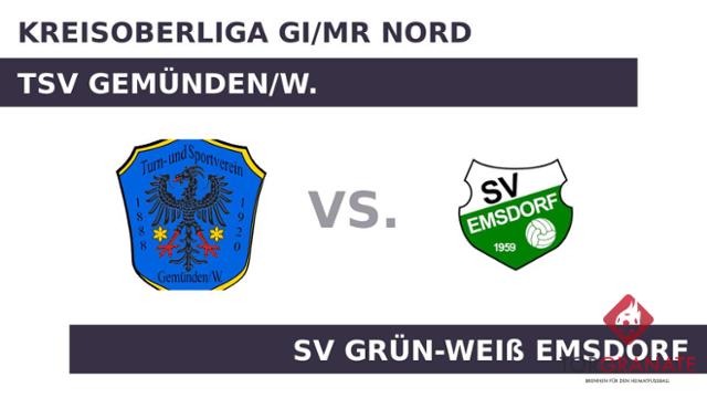 Mit dem SV Grün-Weiß Emsdorf hat der TSV Gemünden/W. – von einer Defensivschwäche geplagt – eine schwere Aufgabe vor der Brust. Der SV Emsdorf erzielte in dieser Saison bereits 15 Treffer und gehört zu den besten Offensivteams der Liga. Die Gastgeber sind das einzige Team in der Liga, das bisher ohne Punkt in der Tabelle dasteht.