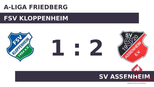 Die Gäste gerieten schon in der dritten Minute in Rückstand, als Hendrik Huwe das schnelle 1:0 für den FSV Kloppenheim erzielte. Erik Kettermann beförderte das Leder zum 1:1 von SV Assenheim in die Maschen (20.). Bis zum Abpfiff des ersten Durchgangs wurden keine Tore mehr geschossen und so traten die Mannschaften den Gang in die Kabinen an. Dank eines Treffers von Aaron Kniß in der Schlussphase (90.) gelang es SV Assenheim, die Führung einzufahren. Am Schluss gewann SV Assenheim gegen den FSV Kloppenheim.