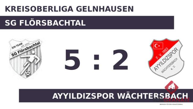 Für Marco Scheidemantel war der Einsatz nach zwölf Minuten vorbei. Für ihn wurde Christopher Menz eingewechselt. Sandro Flach trug sich in der 20. Spielminute in die Torschützenliste ein. Stephen Goesseringer brachte den Ball zum 2:0 zugunsten der SG Flörsbachtal über die Linie (28.). Durch einen von Dimitrij Scheller verwandelten Elfmeter gelang dem Ayy. Wächtersbach in der 33. Minute der 1:2-Anschlusstreffer. In der 44. Minute erhöhte Steffen Weigand mit einem Elfmeter auf 3:1 für die SG Flörsbachtal. Mit der Führung für die SGF ging es in die Kabine. In der Pause stellte das Ayyildizspor Wächtersbach personell um: Per Doppelwechsel kamen Cafer Tayyar Degermenci und Cueneyt Bayram auf den Platz und ersetzten Emre Degermenci und Burak Caylak. Die SG Flörsbachtal konnte mit dem ersten Durchgang sehr zufrieden sein. Trotzdem gab es Veränderungen bei den Flörsbachtaler. Sascha Mueller ersetzte Flach, der nun schon vorzeitig Feierabend machte. Niklas Heiliger verkürzte für das Ayy. Wächtersbach später in der 60. Minute auf 2:3. Nichts ließen die Türken unversucht: Mit Halil Kutlu kam ein weiterer nomineller Angreifer in die Begegnung, der Heiliger ersetzte (66.). Für den nächsten Erfolgsmoment der SG Flörsbachtal sorgte Sebastian Kessler (66.), ehe Mueller das 5:2 markierte (90.). Schlussendlich verbuchte die SG Flörsbachtal gegen das Ayyildizspor Wächtersbach einen überzeugenden Heimerfolg.