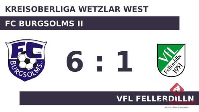 Less Sene brachte den VfL Fellerdilln in der 36. Minute ins Hintertreffen. Kurz vor dem Seitenwechsel legte Patrick Schmidt das 2:0 nach (41.). Der FC Burgsolms II gab in Durchgang eins klar den Ton an. Folgerichtig stand zur Pause eine klare Führung auf dem Zettel. Der Gastgeber baute die Führung aus, indem Schmidt zwei Treffer nachlegte (49./60.). Marlon Mignon schraubte das Ergebnis in der 73. Minute mit dem 5:0 für den FC Burgsolms II in die Höhe. In der Schlussphase gelang Kim Dylus noch der Ehrentreffer für den VfL Fellerdilln (81.). Nikolai Nagel gelang in den Schlussminuten noch ein weiterer Treffer für den FC Burgsolms II (85.). Florian Michael Forster (Langgöns) pfiff schließlich das Spiel ab, in dem der FC Burgsolms II bereits in Durchgang eins deutlich gezeigt hatte, dass es nach 90 Minuten nur einen Sieger geben würde.