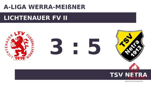 Ein Doppelpack brachte den Spitzenreiter in eine komfortable Position: Niklas Wieditz war gleich zweimal zur Stelle (3./20.). Hannes Küllmer brachte den TSV Netra in ruhiges Fahrwasser, indem er das 3:0 erzielte (32.). Während einige mit ihren Gedanken bereits in der Pause waren, nutzte Musa Corbo seine Chance und schoss das 1:3 (42.) für den Lichtenauer FV II. Es waren die Gäste, die zur Pause eine Führung ihr Eigen nannten. Der TSV Netra baute die Führung aus, indem Wieditz zwei Treffer nachlegte (52./66.). Mit schnellen Toren von Corbo (76.) und Lindrit Cimilji (80.) schlug der Lichtenauer FV II innerhalb kurzer Zeit gleich doppelt zu. Letzten Endes holte der TSV Netra gegen den Gastgeber drei Zähler.