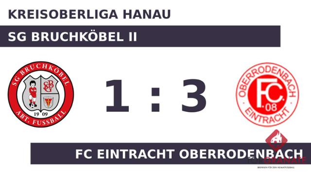 Die SG Bruchköbel II musste den Treffer von Finn Luca Kotyza zum 1:0 hinnehmen (8.). Bereits in der elften Minute erhöhte Lukas Adam den Vorsprung des Eintr. Oberrodenbach. Weitere Tore gelangen bis zur Halbzeit keinem der Teams und so ging es mit einem unveränderten Stand in die Kabine. Adam legte in der 67. Minute zum 3:0 für den FC Eintracht Oberrodenbach nach. Rodney-Dean Kurz witterte seine Chance und schoss den Ball zum 1:3 für die SG Bruchköbel II ein (68.). Nach Beendigung der zweiten Halbzeit hieß das Ergebnis 3:1 zugunsten des Eintr. Oberrodenbach.