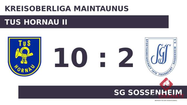 Die SG Sossenheim geriet schon in der siebten Minute in Rückstand, als Philipp Zebrowski das schnelle 1:0 für die TuS Hornau II erzielte. Die SG Sossenheim zeigte sich wenig beeindruckt. In der zehnten Minute schlug Tarik Boutras mit dem Ausgleich zurück. Jens Krämer machte in der 19. Minute das 2:1 der TuS Hornau II perfekt. Durch Treffer von Altangadas Altanhuyug (21.), Jan Schliesche (29.), Paul Riley (38.) und Kermitt Tyler (44.) zog das Heimteam uneinholbar davon. Angesichts der desolaten Vorstellung der SG Sossenheim in der ersten Hälfte ging es mit einem überragenden Vorsprung für die TuS Hornau II in die Pause. In der Pause stellte die SG Sossenheim personell um: Per Doppelwechsel kamen Oussama Bougrich und Issam Belhadji auf den Platz und ersetzten Zakariae El Hanafi und Marco Giliberto. Die TuS Hornau II konnte mit dem ersten Durchgang sehr zufrieden sein. Trotzdem gab es Veränderungen bei der TuS Hornau II. Marcel Schäfer ersetzte Krämer, der nun schon vorzeitig Feierabend machte. Dass es ein ungleiches Duell war, demonstrierten Schliesche (77.), Zebrowski (78.) und Ludwig Palm (80.), die weitere Treffer für die TuS Hornau II folgen ließen. Yunus Lino Soares versenkte den Ball in der 87. Minute im Netz der TuS Hornau II. Riley gelang in den Schlussminuten noch ein weiterer Treffer für die TuS Hornau II (90.). Am Ende fuhr die TuS Hornau II einen deutlichen Sieg ein. Dabei demonstrierte die TuS Hornau II bereits in Hälfte eins großes Leistungsvermögen, als man die SG Sossenheim in Grund und Boden spielte.