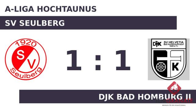 Ausgerechnet zum psychologisch ungünstigen Zeitpunkt vor der Halbzeit traf Jannis Bornschein für den SV Seulberg zur Führung (45.). Das Heimteam nahm die knappe Führung mit in die Kabine. In der 47. Minute verwandelte Mohamed El Mahaoui dann einen Elfmeter für die DJK Bad Homburg II zum 1:1. Letzten Endes gewann niemand die Oberhand, sodass sich der SV Seulberg und die DJK Bad Homburg II die Punkte teilten.