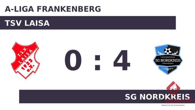 Die SG Nordkreis ging durch Tobit Doernbach in der 35. Minute in Führung. Zur Pause wusste der Gast eine hauchdünne Führung auf der Habenseite. Durch ein Eigentor des TSV Laisa verbesserte die SG Nordkreis den Spielstand auf 2:0 für sich (63.). Bei der SG Nordkreis kam Tristan Hoecker für Torsten Hoecker ins Spiel und sollte fortan für neue Impulse sorgen (73.). Tristan Hoecker beseitigte mit seinen Toren (75./82.) die letzten Zweifel am Sieg der SG Nordkreis. Ein starker Auftritt ermöglichte der SG Nordkreis am Freitag einen ungefährdeten Erfolg gegen den TSV Laisa.