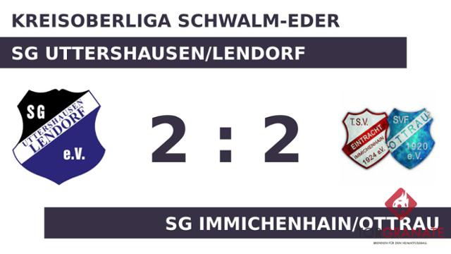 Auf die vermeintliche Siegerstraße brachte Blagojche Konjarski sein Team in der 16. Minute. Den Freudenjubel der SG Uttershausen/Lendorf machte Julian Kurz zunichte, als er kurz darauf den Ausgleich besorgte (22.). Bis zur Halbzeit änderte sich am Stand nichts mehr und so ging es nach dem Pausenpfiff in den Kabinentrakt. Für das zweite Tor von Uttershausen/Lendorf war Fabian Grosse verantwortlich, der in der 65. Minute das 2:1 besorgte. Roman Bernhardt sicherte der SG Immichenhain/Ottrau nach 77 Minuten den Ausgleich durch einen Elfmeter. Schließlich gingen die SG Uttershausen/Lendorf und Immichenhain/Ottrau mit einer Punkteteilung auseinander.