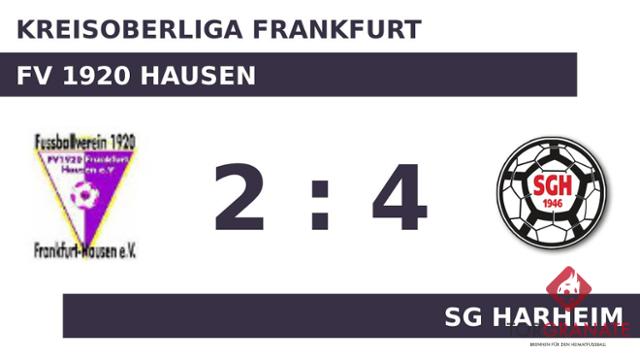 Auf die vermeintliche Siegerstraße brachte Mustafa Ilhan sein Team in der 15. Minute. Den Freudenjubel des FV 1920 Hausen machte Nico Wetzel zunichte, als er kurz darauf den Ausgleich besorgte (20.). Zum Seitenwechsel hatte keine Mannschaft die Oberhand gewonnen. Unentschieden lautete der Zwischenstand. In Durchgang zwei lief Sasha Sabic anstelle von Ilhan für den FV 1920 Hausen auf. Daniel Stumpp witterte seine Chance und schoss den Ball zum 2:1 für die SG Harheim ein (51.). In der 66. Minute verwandelte Ante Paradzik einen Elfmeter zum 3:1 für den Gast. Sina Shakouri, der für Shion Tsuji in die Partie kam, sollte die Offensive des FV 1920 Hausen beleben (66.). Durch einen Elfmeter von Shakouri kam der FVH noch einmal ran (70.). In der 75. Minute brachte Jonas Kaulich das Netz für die SG Harheim zum Zappeln. Am Schluss schlug die SG Harheim den FV 1920 Hausen mit 4:2.