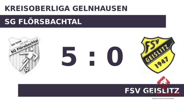 Stephen Goesseringer brachte den FSV Geislitz per Doppelschlag ins Hintertreffen, als er in der 20. und 31. Minute vollstreckte. Der dritte Streich der SG Flörsbachtal war Steffen Weigand vorbehalten (33.). Kurz vor dem Pausenpfiff erhöhte Sebastian Kessler den Vorsprung der SGF auf 4:0 (45.). Zur Halbzeit blickten die Flörsbachtaler auf einen klaren Vorsprung gegen einen Gegner, den man deutlich beherrschte. Anstelle von Vincenzo Carrozza war nach Wiederbeginn Yahya Basaran für den FSV Geislitz im Spiel. Eigentlich war der FSV schon geschlagen, als Sandro Flach das Leder zum 0:5 über die Linie beförderte (58.). Der Unparteiische pfiff schließlich das Spiel ab, in dem die SG Flörsbachtal bereits in Durchgang eins deutlich gezeigt hatte, dass es nach 90 Minuten nur einen Sieger geben würde.