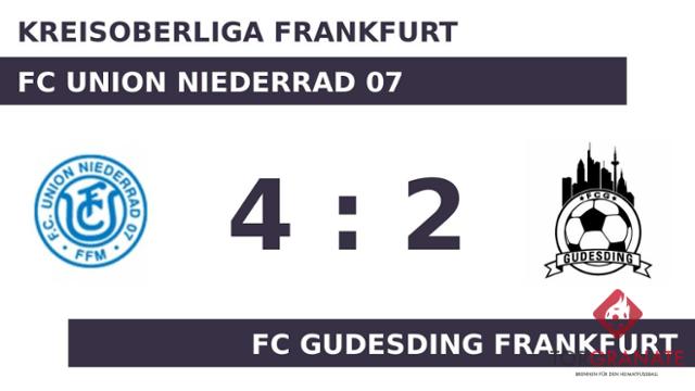 Der FC Union Niederrad 07 ist jetzt mit sieben Zählern punktgleich mit dem FC Gudesding, platziert sich jedoch aufgrund des schlechteren Torverhältnisses von 17:17 auf dem 13. Rang etwas dahinter. Der FC Union Niederrad bessert seine eher dürftige Bilanz auf und kommt nun auf insgesamt zwei Siege, ein Unentschieden und drei Pleiten. Die bisherige Saisonbilanz des FC Gudesding Frankfurt bleibt mit zwei Siegen, einem Unentschieden und drei Pleiten schwach.