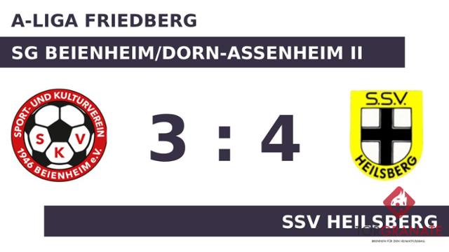 Beim SSV Heilsberg kam Lyes Manaa für Julian Vespermann ins Spiel und sollte fortan für neue Impulse sorgen (16.). Nach nur 28 Minuten verließ Adrian Tefiki vom Gast das Feld, Mert Avci kam in die Partie. Der SSV Heilsberg ging durch Bramont Maique Coelho in der 36. Minute in Führung. Zum psychologisch wichtigen Zeitpunkt kurz vor der Halbzeit (44.) traf Moritz Umlauf zum Ausgleich für das Beienh./Dorn-Ass. II. Eine Aussage darüber, wer am Ende die Nase vorn haben würde, war nach dem Abpfiff der ersten Halbzeit noch nicht zu treffen. Es ging mit einem Gleichstand in die Kabinen. Manaa verwandelte in der 62. Minute einen Elfmeter und brachte dem SSV Heilsberg die 2:1-Führung. Zwei schnelle Treffer von Kewin Lucian Jansa (81.) und Manaa (83.) sorgten für die Vorentscheidung zugunsten des SSV Heilsberg. Mit dem 3:4 gelang Umlauf ein Doppelpack – an der Niederlage änderte dies jedoch auch nichts mehr (90.). Der SG Beienheim/Dorn-Assenheim II steigerte sich nach desolatem Beginn im Laufe der Partie. Unterm Strich erwies sich der Rückstand jedoch als zu groß, als dass die Heimmannschaft etwas hätte mitnehmen können.
