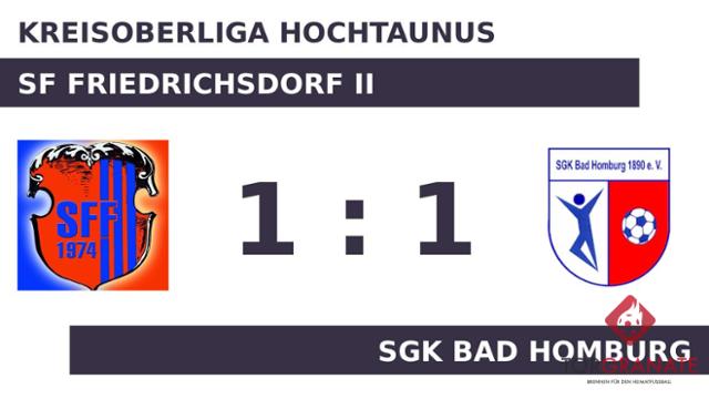 Luka Juko brachte die SGK Bad Homburg in der 30. Minute ins Hintertreffen. Zum Abpfiff der ersten Halbzeit hatte die SF Friedrichsdorf II einen knappen Vorsprung herausgespielt. Steven Diehl, der von der Bank für David Eiding kam, sollte für neue Impulse bei der SGK Bad Homburg sorgen (69.). Diehl, der in der 90. Minute erfolgreich war, sorgte mit seinem Treffer kurz vor dem Spielende für den Ausgleich. Am Ende trennten sich die SF Friedrichsdorf II und die SGK Bad Homburg schiedlich-friedlich.