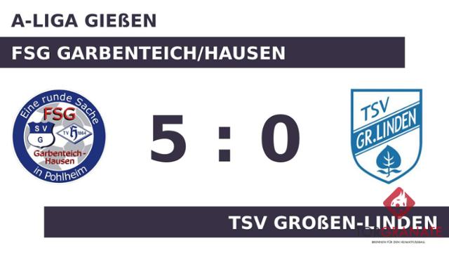 Lukas Genslein brachte sein Team in der 17. Minute nach vorn. Tolga Akyildiz erhöhte für die Garbenteich/Hausen auf 2:0 (37.). Zum psychologisch ungünstigen Zeitpunkt vor der Halbzeit (42.) schoss Florian Herr einen weiteren Treffer für den Gastgeber. Zur Halbzeit blickte die FSG Garbenteich/Hausen auf einen klaren Vorsprung gegen einen Gegner, den man deutlich beherrschte. Für das 4:0 der Garbenteich/Hausen sorgte Florian Pinkl, der in Minute 76 zur Stelle war. Luca Wehrum stellte wenige Minuten vor dem Schlusspfiff den Stand von 5:0 für die FSG Garbenteich/Hausen her (90.). Mit dem Spielende fuhr die FSG Garbenteich/Hausen einen Kantersieg ein. Bereits vor dem Seitenwechsel war für den TSV Großen-Linden klar, dass gegen die Garbenteich/Hausen heute kein Kraut gewachsen war.