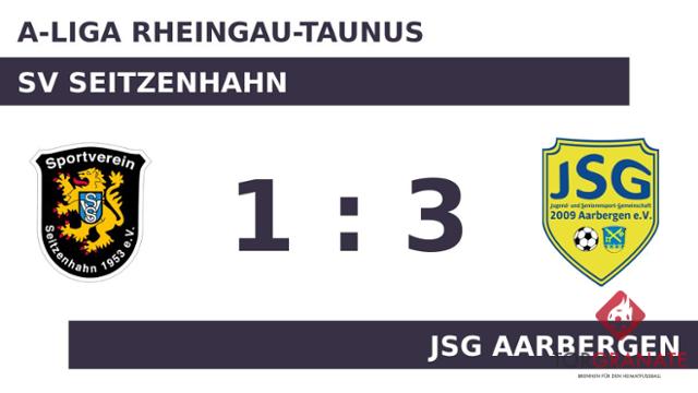 Mirza Idrizovic brachte die JSG Aarbergen in der fünften Minute in Front. Der SV Seitzenhahn zeigte sich wenig beeindruckt. In der achten Minute schlug Johannes Groeger mit dem Ausgleich zurück. Vor dem Seitenwechsel sorgte Radovan Djukovic mit seinem Treffer für eine kalte Dusche für die Gastgeber. Ein Tor auf Seiten der JSG Aarbergen machte zur Pause den Unterschied zwischen den beiden Mannschaften aus. In Durchgang zwei lief Dennis Bloch anstelle von Tino Schultz für den SV Seitzenhahn auf. Maurice Friedel erhöhte den Vorsprung der JSG Aarbergen nach 71 Minuten auf 3:1. Am Ende punktete die JSG Aarbergen dreifach beim SV Seitzenhahn.
