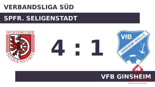 Philipp Traut brachte die Sportfreunde in der 13. Spielminute in Führung. Bis zum Halbzeitpfiff blieb der knappe Vorsprung der SFS bestehen. Für das 1:1 des VfB Ginsheim zeichnete Giovanni Speranza verantwortlich (46.). Eine Minute später ging die Spfr. Seligenstadt durch den zweiten Treffer von Traut in Führung. Muhammed Kayaroglu erhöhte für die Seligenstädter auf 3:1 (57.). Mit dem 4:1 sicherte Traut der Heimmannschaft nicht nur den Sieg, sondern erzielte auch seinen dritten Tagestreffer (73.). Letztlich nahm der VfB Ginsheim im Kellerduell bei der Spfr. Seligenstadt eine bittere Niederlage hin und unterlag mit 4:1.