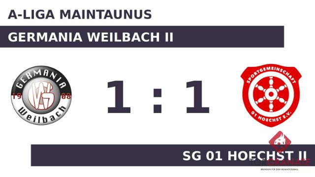 Mohamed Achchibani brachte die SG 01 Hoechst II in der 32. Spielminute in Führung. Wenige Momente vor dem Seitenwechsel war Johannes Weilbaecher mit dem 1:1 für die Germania Weilbach II zur Stelle (45.). Auch in der zweiten Halbzeit gelang es dem Heimteam nicht, aus dem Heimvorteil Kapital zu schlagen. So blieb es auch nach weiteren 45 Minuten beim 1:1-Remis.