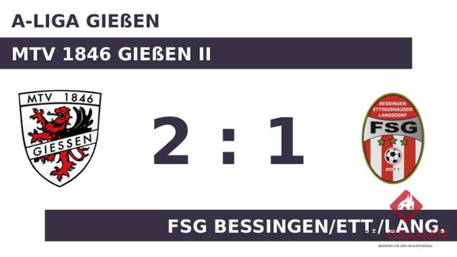 Florian Kremer musste nach nur 17 Minuten vom Platz, für ihn spielte Jannik Görnert weiter. Bis Referee Christian Schmidt (Gießen) den ersten Durchlauf beendete, änderte sich am Zählerstand nichts mehr. Das 1:0 des MTV 1846 Gießen II stellte Joshua Zaborowski sicher (47.). Justin Schmidt ließ sich in der 66. Minute nicht zweimal bitten und verwertete zum 1:1 für die FSG Bess./Ett./Lang. Dass der MTV 1846 Gießen II in der Schlussphase auf den Sieg hoffte, war das Verdienst von David Böhm, der in der 80. Minute zur Stelle war. Kurz vor dem Ende des Spiels nahmen die Gastgeber noch einen Doppelwechsel vor, sodass Benno Osterloh und Felix Plit für Carlo Staudt und Jan Spiegl weiterspielten (90.). Schließlich holte der MTV 1846 Gießen II gegen den direkten Abstiegskonkurrenten die Big Points und feierte einen 2:1-Sieg.