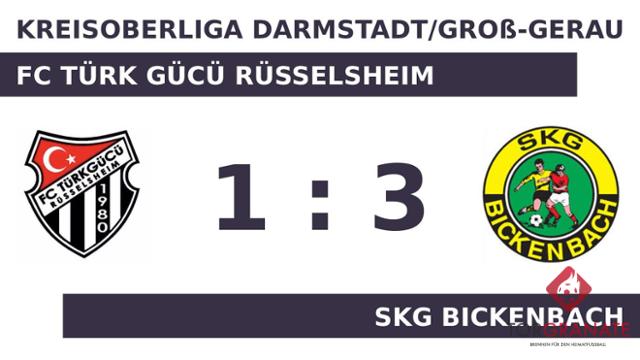 Ole Spiecker stellte die Weichen für den Gast auf Sieg, als er in Minute 33 mit dem 1:0 zur Stelle war. Als manch einer bereits mit den Gedanken in der Halbzeit war, besorgte Riza Can Coban auf Seiten des FC Türk Gücü Rüsselsheim das 1:1 (42.). Zum Seitenwechsel hatte keine Mannschaft die Oberhand gewonnen. Unentschieden lautete der Zwischenstand. Willy Eifler versenkte die Kugel zum 2:1 (50.). Lucas Anding erhöhte den Vorsprung der SKG Bickenbach nach 55 Minuten auf 3:1. Mit dem Ende der Spielzeit strich die SKG Bickenbach gegen den FC TG Rüsselsheim die volle Ausbeute ein.