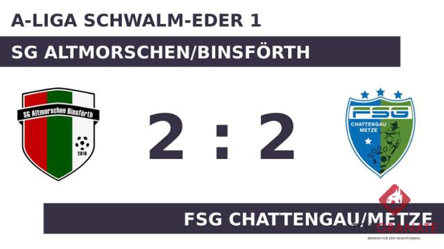 Sergiu Galusca brachte die SG Altmorschen/Binsförth in der zwölften Minute in Front. Geschockt zeigte sich die FSG Chattengau/Metze nicht. Nur wenig später war Kevin Genilke mit dem Ausgleich zur Stelle (16.). Das letzte Tor der turbulenten Startphase markierte Nazieh Al Rashed in der 21. Minute. Altmorschen/Binsf. hatte zur Pause eine knappe Führung auf dem Zettel stehen. Das Heimteam musste den Treffer von Mario Armbröster zum 2:2 hinnehmen (62.). Am Ende stand ein Teilerfolg für beide Mannschaften. Die SG Altmorschen/Binsförth und die FSG Chattengau/Metze spielten unentschieden.