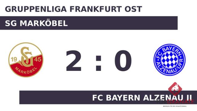 Ausgerechnet zum psychologisch ungünstigen Zeitpunkt vor der Halbzeit traf Lucas Schmidt für die Sportgemeinschaft zur Führung (44.). Ein Tor auf Seiten der SGM machte zur Pause den Unterschied zwischen den beiden Mannschaften aus. Der FC Bayern Alzenau II wechselte für den zweiten Durchgang: K.A. k.A. spielte für Danilo Milosevic weiter. Can Kayalar versenkte die Kugel zum 2:0 für die SG Marköbel (52.). Wenig später kamen Vincent Glavan und Marko Culic per Doppelwechsel für Marc Mc Caughey und Loick Gandonou auf Seiten des FC Bayern Alzenau II ins Match (56.). Letztlich nahm der FC Bayern Alzenau II im Kellerduell bei der SG Marköbel eine bittere Niederlage hin und unterlag mit 2:0.