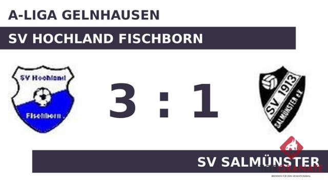 Das erste Tor des Spiels ging an den SVH. Allerdings gelang dies nur mithilfe des SV Salmünster: 1:0 für den SV Hochland Fischborn durch ein Eigentor in der sechsten Minute. Florian Bäuscher brachte den Ball zum 2:0 zugunsten des SV Fischborn über die Linie (21.). Das letzte Tor der turbulenten Startphase markierte Samet Oeztuerk in der 25. Minute. Weitere Tore gelangen bis zur Halbzeit keinem der Teams und so ging es mit einem unveränderten Stand in die Kabine. In der 78. Minute erhöhte Leon Landschreiber auf 3:1 für den SV Hochland Fischborn. Schließlich sprang für die Fischborner gegen den SV Salmünster ein Dreier heraus.
