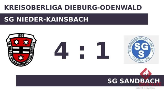 Bjoern Kabel trug sich in der 18. Spielminute in die Torschützenliste ein. Kurz vor dem Pausenpfiff erhöhte Dominik Neff den Vorsprung der SG Nieder-Kainsbach auf 2:0 (41.). Mit der Führung für den Gastgeber ging es in die Halbzeitpause. Jan Eckert, der von der Bank für Jannik Fornoff kam, sollte für neue Impulse bei der SG Sandbach sorgen (52.). Mit dem 3:0 von Neff für die SG Nieder-Kainsbach war das Spiel eigentlich schon entschieden (60.). Die SG Sandbach verkürzte den Rückstand in der 86. Minute durch einen Elfmeter von Eckert auf 1:3. Marcel Wuensche stellte schließlich in der 87. Minute den 4:1-Sieg für die SG Nieder-Kainsbach sicher. Letztlich fuhr die SG Nieder-Kainsbach einen souveränen Erfolg ein, dessen Grundstein im ersten Spielabschnitt gelegt worden war.