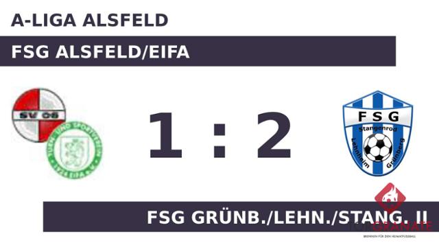 Anton Schneider brachte das Grünb/Lehnh/Stang II in der elften Spielminute in Führung. Komfortabel war die Pausenführung des Gasts nicht, aber immerhin ging die FSG Grünb./Lehn./Stang. II mit einem Tor Vorsprung in die Umkleidekabinen. Leon Schaplow erhöhte für das Grünb/Lehnh/Stang II auf 2:0 (53.). Wenig später kamen Patrick Miskow und Stefan Kraus per Doppelwechsel für Denis Gebauer und Patrick Drozd auf Seiten der FSG Alsfeld/Eifa ins Match (55.). Kurz vor Ultimo war noch Tekin Yildirim zur Stelle und zeichnete für das erste Tor der Fußballspielgemeinschaft verantwortlich (81.). Schließlich strich die FSG Grünb./Lehn./Stang. II die Optimalausbeute gegen die FSG ein.
