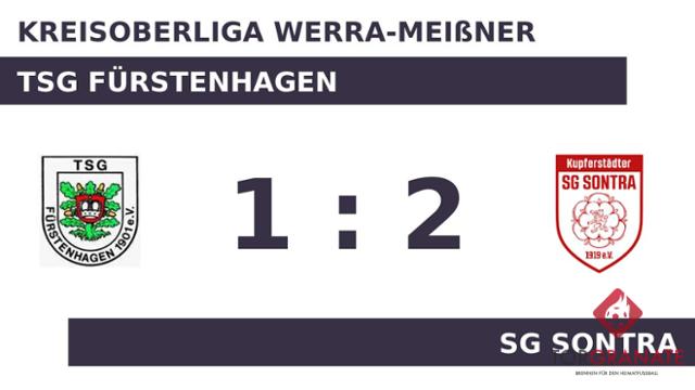 Nicolae Titan brachte den TSG Fürstenhagen in der zwölften Spielminute in Führung. Nach nur 25 Minuten verließ Peter Muehleder von der SG Sontra das Feld, Ben Luca Sippel kam in die Partie. Lukas Jörg Buchenau nutzte die Chance für den Gast und beförderte in der 27. Minute das Leder zum 1:1 ins Netz. Bis zur Pause fiel kein weiteres Tor, sodass es schließlich mit unverändertem Ergebnis in die Kabinen ging. Dass die SG Sontra in der Schlussphase auf den Sieg hoffte, war das Verdienst von Holger Dietel, der in der 71. Minute zur Stelle war. Die 1:2-Heimniederlage des TSG Fürstenhagen war Realität, als Referee Jürgen Backhaus (Steinheuterode) die Partie letztendlich abpfiff.