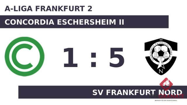 Maik Wagner brachte die Conc. Eschersheim II per Doppelschlag ins Hintertreffen, als er in der 18. und 26. Minute vollstreckte. Emrah Tahirovic baute den Vorsprung von SV Frankfurt Nord in der 36. Minute aus. Als manch einer bereits mit den Gedanken in der Halbzeit war, besorgte Ussama Djellakh auf Seiten der Concordia Eschersheim II das 1:3 (41.). Es waren die Gäste, die zur Pause eine Führung ihr Eigen nannten. Der vierte Streich von SV Frankfurt Nord war Advan Cakiqi vorbehalten (69.). Goekhan Temur gelang in den Schlussminuten noch ein weiterer Treffer für den Gast (85.). Ein starker Auftritt ermöglichte SV Frankfurt Nord am Sonntag einen ungefährdeten Erfolg gegen die Conc. Eschersheim II.