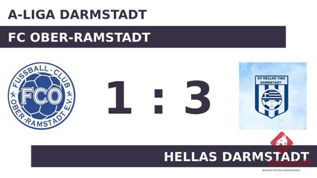 Kaum war das Spiel angepfiffen, lag der FC Ober-Ramstadt bereits in Front. Baran Kilic markierte in der dritten Minute die Führung. Sven Schoenig witterte seine Chance und schoss den Ball zum 1:1 für das Hellas Darmstadt ein (20.). Eine Aussage darüber, wer am Ende die Nase vorn haben würde, war nach dem Abpfiff der ersten Halbzeit noch nicht zu treffen. Es ging mit einem Gleichstand in die Kabinen. Anstelle von Georgios Karipidis war nach Wiederbeginn Bekir Aldemir für das Hellas Darmstadt im Spiel. Dass der Gast in der Schlussphase auf den Sieg hoffte, war das Verdienst von Aldemir, der in der 72. Minute zur Stelle war. In der 77. Minute erhöhte Marc Perchner auf 3:1 für das Hellas Darmstadt. Die 1:3-Heimniederlage des FC Ober-Ramstadt war Realität, als Referee Adriatik Kaba (Egelsbach) die Partie letztendlich abpfiff.