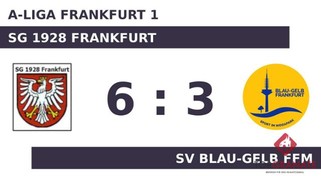 Für das erste Tor sorgte Marco Metz. In der 20. Minute traf der Spieler des SV Blau-Gelb Ffm ins Schwarze. Christian Lohmann erhöhte den Vorsprung des Gasts nach 23 Minuten auf 2:0. Niklas Spies überwand den gegnerischen Schlussmann zum 3:0 für den SV Blau-Gelb Ffm (36.). Die Überlegenheit des SV Blau-Gelb Ffm spiegelte sich in einer deutlichen Halbzeitführung wider. In der 51. Minute brachte Arif Krasniqi das Netz für die SG 1928 Frankfurt zum Zappeln. Achraf Taourarti schlug doppelt zu und glich damit für die Heimmannschaft aus (53./56.). Dem 4:3 durch Ugur Kara (59.) ließen Taourarti (73.) und k. A. (86.) weitere Treffer für die SG 1928 Frankfurt folgen. Ab der 74. Minute bereicherte der für Kara eingewechselte Gökhan Arslan die SG 1928 Frankfurt im Vorwärtsgang. Mit dem Abpfiff des Referees Ekrem Demir (Mainz) hatte der SV Blau-Gelb Ffm das Polster der ersten Hälfte verspielt, sodass es letzten Endes nicht einmal für ein Unentschieden reichte.