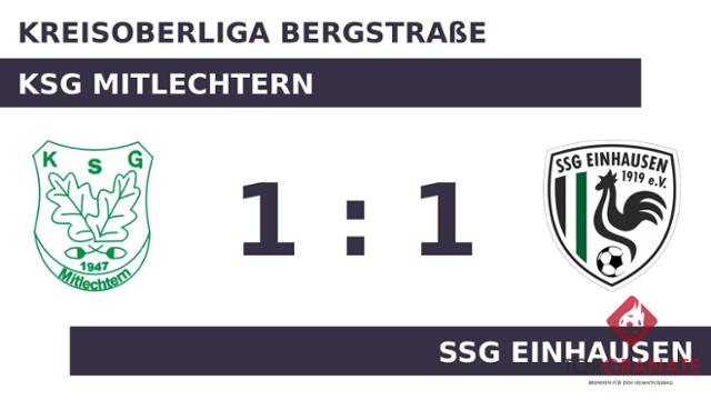 Die Heimmannschaft ging durch Steffen Schmitt in der 38. Minute in Führung. Zum psychologisch wichtigen Zeitpunkt kurz vor der Halbzeit (45.) traf Max Gebhardt zum Ausgleich für die SSG Einhausen. Der Schlusspfiff durch den Unparteiischen Heiko Langhammer (Rüsselsheim am Main) setzte allen Hoffnungen auf weitere Treffer ein Ende. Es blieb letztlich bei der Punkteteilung.