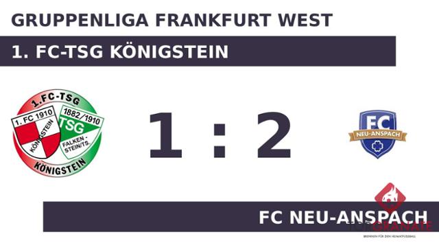 Die erste Halbzeit endete ohne ein zählbares Ereignis für beide Mannschaften. Maziar Namavizadeh brachte den FC Neu-Anspach in der 58. Minute in Front. In der 65. Minute erhöhte Bilal El Makrini auf 2:0 für den FCNA. Kurz vor Ultimo war noch Julius Wuerges zur Stelle und zeichnete für das erste Tor des 1. FC-TSG Königstein verantwortlich (84.). In den 90 Minuten war der FC Neu-Anspach im gegnerischen Strafraum erfolgreicher als der 1. FC-TSG Königstein und fuhr somit einen 2:1-Sieg ein.