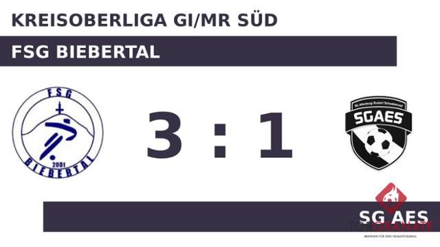 Das Heimteam erwischte einen Blitzstart ins Spiel. Andreas Schute traf in der sechsten Minute zur frühen Führung. Nach nur 28 Minuten verließ Henrik Mohr von der SG AES das Feld, Erik Schnell-Kretschmer kam in die Partie. Ehe der Referee Marvin Starck (Battenberg (Eder)) die Protagonisten zur Pause bat, traf Ole Daum zum 1:1 zugunsten des Gasts (44.). Zur Halbzeit war die Partie noch vollkommen offen. Remis lautete das Zwischenresultat. Für das 2:1 zugunsten der FSG Biebertal sorgte dann kurz vor Schluss Leon Schorge, der die FSG Biebertal und die Fans von einer Spitzenplatzierung träumen ließ (87.). Ehe der Abpfiff ertönte, war es Rafael Szymanski, der das 3:1 aus Sicht der FSG Biebertal perfekt machte (90.). Am Ende behielt die FSG Biebertal gegen die SG AES die Oberhand.