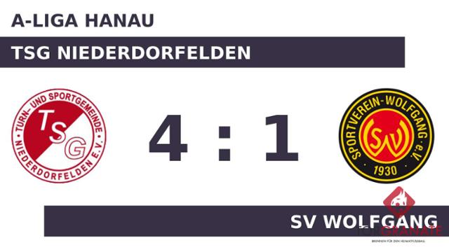 Nestor von Jagow traf zum 1:0 zugunsten des Heimteams (31.). Ehe der Unparteiische Tobias Stephan (Gründau) die Akteure zur Pause bat, erzielte Julian Sabato aufseiten des SV Wolfgang das 1:1 (41.). Eine Aussage darüber, wer am Ende die Nase vorn haben würde, war nach dem Abpfiff der ersten Halbzeit noch nicht zu treffen. Es ging mit einem Gleichstand in die Kabinen. Ajdin Dzafic verwandelte in der 57. Minute einen Elfmeter und brachte der TSG Niederdorfelden die 2:1-Führung. Für das 4:1 zugunsten der TSG Niederdorfelden sorgte dann kurz vor Schluss Adam Szcepanski, der die TSG Niederdorfelden und die Fans von einer Spitzenplatzierung träumen ließ (90.). Mit dem Tor zum 3:1 steuerte von Jagow bereits seinen zweiten Treffer an diesem Tag bei (90.). Nach der Beendigung des Spiels durch den Unparteiischen Tobias Stephan (Gründau) feierte die TSG Niederdorfelden einen dreifachen Punktgewinn gegen den SV Wolfgang.