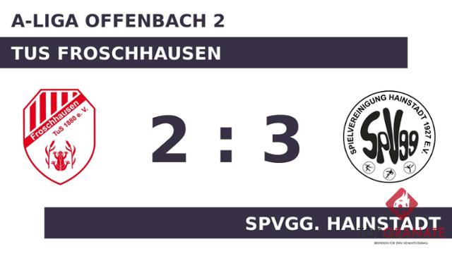 Nikolaos Kouzouglidis brachte die Spvgg. Hainstadt in der 17. Spielminute in Führung. Nico Schoebel sicherte der TUS Froschhausen nach 20 Minuten den Ausgleich durch einen Elfmeter. Nach nur 21 Minuten verließ Liam Jedersberger von den Gastgebern das Feld, Sascha Hark kam in die Partie. Ohne weitere Tore ging es in die Pause. Die Spvgg. Hainstadt gelangte durch ein Selbsttor der TUS Froschhausen zur 2:1-Führung (54.). Das 2:2 der TUS Froschhausen stellte Robin Junker sicher (74.). Der Schlusspfiff war zum Greifen nah, als Nils Kaiser noch einen Treffer parat hatte (90.). Am Schluss siegte die Spvgg. Hainstadt gegen die TUS Froschhausen.
