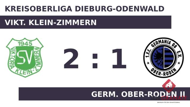 Nach nur 25 Minuten verließ Raihan Winkler von der Vikt. Klein-Zimmern das Feld, Steven Baader kam in die Partie. Bis Referee Ingo Wellmann (Lorsch) den ersten Durchlauf beendete, änderte sich am Zählerstand nichts mehr. Calvin Baader glänzte an diesem Tag besonders. Er traf im Doppelpack für die Vikt. Klein-Zimmern (51./74.). Kurz vor Ultimo war noch Sinan Özgün zur Stelle und zeichnete für das erste Tor der Germ. Ober-Roden II verantwortlich (85.). Schließlich holte die Vikt. Klein-Zimmern gegen den direkten Abstiegskonkurrenten die Big Points und feierte einen 2:1-Sieg.