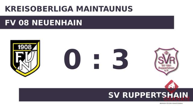 Nach den ersten 45 Minuten ging es für den FV 08 Neuenhain und den SV Ruppertshain ohne Torerfolg in die Kabinen. Kristian Marcel Henninger brachte den FV 08 Neuenhain in der 49. Minute ins Hintertreffen. Jonas Park beförderte das Leder zum 2:0 des SV Ruppertshain über die Linie (53.). Matthias Rang stellte schließlich in der 81. Minute den 3:0-Sieg für den Gast sicher. Schließlich erlitt der FV 08 Neuenhain im direkten Aufeinandertreffen mit dem Abstiegskonkurrenten eine deutliche Niederlage.