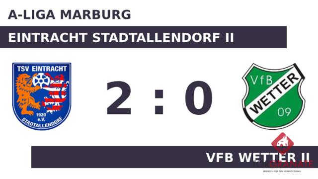 Kurz vor dem Pfiff zur Halbzeit machte Paul Jura das 1:0 zugunsten der Heimmannschaft (41.). Die Eintracht Stadtallendorf II hatte zur Pause eine knappe Führung auf dem Zettel stehen. Kurz vor Ultimo war noch Soeren Merkel zur Stelle und zeichnete für das zweite Tor des TSV Eintracht II verantwortlich (85.). Schließlich sprang für die Eintracht Stadtallendorf II gegen den VfB Wetter II ein Dreier heraus.