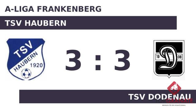 Kaum war das Spiel angepfiffen, lag der TSV Dodenau bereits in Front. Luca Opper markierte in der fünften Minute die Führung. In der 14. Minute verwandelte Timo Winter einen Elfmeter zum 2:0 für die Gäste. Mit einem Elfmeter von Bastien Puy kam der TSV Haubern noch einmal ran (40.). Kurz vor dem Halbzeitpfiff (43.) baute Alessio Bonvino die Führung des TSV Dodenau aus. Es waren die Gäste, die zur Pause eine Führung ihr Eigen nannten. Das 2:3 des TSV Haubern stellte Christian Ochse sicher (63.). In der 68. Minute gelang den Gastgebern, was zur Pause in weiter Ferne war: der Ausgleichstreffer durch Kumpf Boas. Mit dem Schlusspfiff beendete der Unparteiische Markus Waid (Edertal) den schwachen zweiten Durchgang des TSV Dodenau, in dem der TSV Haubern sich ein Unentschieden erkämpft hatte.