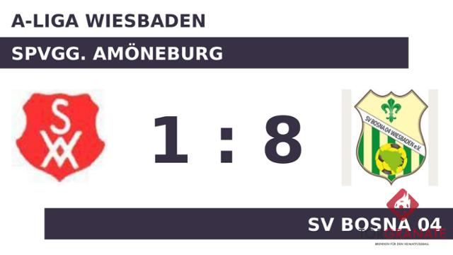Almir Podhumljak brachte den SV Bosna 04 in der 13. Minute in Front. Andy Nock musste nach nur 16 Minuten vom Platz, für ihn spielte Steven Engel weiter. Kevin Kraemer war zur Stelle und markierte das 1:1 der Spvgg. Amöneburg (23.). Der Treffer zum 2:1 sicherte dem SV Bosna 04 nicht nur die Führung – es war auch bereits der zweite von Podhumljak in diesem Spiel (35.). Der SV Bosna 04 hatte zur Pause eine knappe Führung auf dem Zettel stehen. Armin Sabanovic beförderte das Leder zum 3:1 des SV Bosna 04 über die Linie (58.). Wenig später kamen Amar Karjasevic und Emil Numanovic per Doppelwechsel für Ervin Drazevicanin und Hasan Dzinic auf Seiten des SV Bosna 04 ins Match (60.). Aladin Pilica gelang ein Doppelpack (77./79.), mit dem er das Ergebnis auf 5:1 hochschraubte. Für die Spvgg. Amöneburg war es ein Tag zum Vergessen. Sabanovic (83.), Numanovic (86.) und Siddik Dzinic (90.) machten das Unheil perfekt. Der SV Bosna 04 überrannte die Spvgg. Amöneburg förmlich mit acht Toren und fährt so mit einem verdienten Sieg in der Tasche nach Hause.