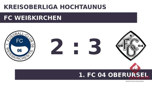 Bei der Heimmannschaft kam Ibrahim Abbouz für Said Talhaoui ins Spiel und sollte fortan für neue Impulse sorgen (26.). Der 1. FC 04 Oberursel ging per Elfmeter von Nils Fischer in Führung (29.). Felix Ilg brachte den Ball zum 2:0 zugunsten des 1. FC 04 Oberursel über die Linie (36.). Wenige Momente vor dem Seitenwechsel war Abbouz mit dem 1:2 für den FC Weißkirchen zur Stelle (42.). Zur Pause wusste der 1. FC 04 Oberursel eine hauchdünne Führung auf der Habenseite. Der 1. FC 04 Oberursel musste den Treffer von Abbouz zum 2:2 hinnehmen (74.). Der Schlusspfiff war zum Greifen nah, als Adam Abbass noch einen Treffer parat hatte (90.). Am Ende verbuchte der 1. FC 04 Oberursel gegen den FC Weißkirchen einen Sieg.