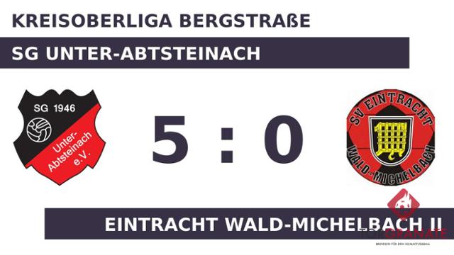 Christoph Bittermann stellte die Weichen für die SGU auf Sieg, als er in Minute zehn mit dem 1:0 zur Stelle war. Dogukaan Sengül traf zum 2:0 zugunsten des Heimteams (37.). Mit der Führung für Unter-Abtsteinach ging es in die Kabine. Mats Gärtner verwandelte in der 61. Minute einen Elfmeter und baute den Vorsprung der SG Unter-Abtsteinach auf 3:0 aus. Sengül schraubte das Ergebnis in der 77. Minute mit dem 4:0 für Unter-Abtsteinach in die Höhe. Ilyas Can Dinc vollendete zum fünften Tagestreffer in der 83. Spielminute. Am Ende kam die SG Unter-Abtsteinach gegen Eintracht Wald-Michelbach II zu einem verdienten Sieg.