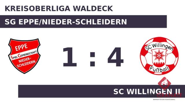 Für das erste Tor sorgte Beyami Dip. In der 19. Minute traf der Spieler des SC Willingen II ins Schwarze. Den Freudenjubel des Gasts machte Christopher Emde zunichte, als er kurz darauf den Ausgleich besorgte (25.). Nach nur 30 Minuten verließ Mario Fischer von Eppe/Ndr-Schleidern das Feld, Marco Rupprath kam in die Partie. Ohne weitere Tore ging es in die Pause. Jan Hendrik Keindl brachte dem SC Willingen II nach 50 Minuten die 2:1-Führung. Baktybek Izabekov beförderte das Leder zum 3:1 des SC Willingen II über die Linie (70.). Keindl stellte wenige Minuten vor dem Schlusspfiff den Stand von 4:1 für den SC Willingen II her (90.). Mit Ablauf der Spielzeit schlug der SC Willingen II die SG Eppe/Nieder-Schleidern 4:1.