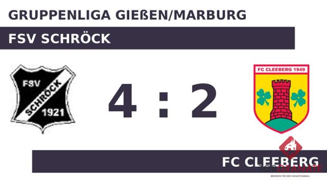 Der FC Cleeberg geriet schon in der sechsten Minute in Rückstand, als Marcel Schmitt das schnelle 1:0 für den FSV Schröck erzielte. Weitere Tore gab es bis zum Pausenpfiff nicht und so ging es mit der Führung des FSV Schröck in die Kabine. In der 52. Minute brachte Nico Rosenkranz den Ball im Netz der Schröcker unter. Simon Kranz brachte dem FC Cleeberg nach 62 Minuten die 2:1-Führung. Toki Hiromoto schockte den Gast und drehte die Partie mit seinem Doppelpack für den FSV Schröck (64./78.). Mit dem 4:2 sicherte Schmitt dem FSV Schröck nicht nur den Sieg, sondern erzielte auch seinen zweiten Tagestreffer (83.). Am Ende behielt der FSV Schröck gegen den FC Cleeberg die Oberhand.