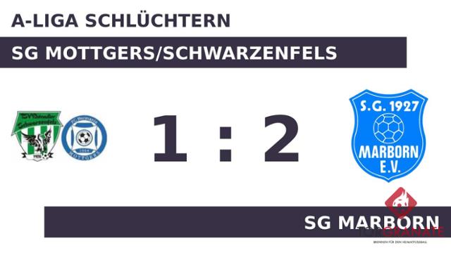 Joshua Schaefer musste nach nur 19 Minuten vom Platz, für ihn spielte Martin Maienschein weiter. Sascha Hölzer beförderte das Leder zum 1:0 von Mottgers/Schwarzenf. in die Maschen (34.). Zur Pause behielt die Spielgemeinschaft die Nase knapp vorn. Oliver Glaschke schockte die Gastgeber und drehte die Partie mit seinem Doppelpack für die SG Marborn (61./90.). Mit Ablauf der Spielzeit schlug die SG Marborn die SG Mottgers/Schwarzenfels 2:1.