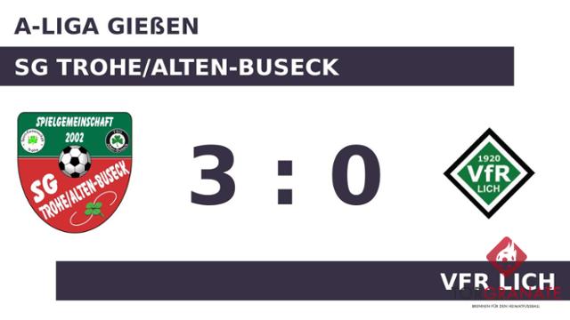 Nach den ersten 45 Minuten ging es für die Gastgeber und den VfR Lich ohne Torerfolg in die Kabinen. Nicolas Dieter Hahn stellte die Weichen für die Trohe/Alten-Buseck auf Sieg, als er in Minute 48 mit dem 1:0 zur Stelle war. Amirali Rezaei trug sich in der 63. Spielminute in die Torschützenliste ein. Wenig später kamen Philipp Heinemann und Giuliano Jozzi per Doppelwechsel für Paul Vogt und Denis Przezdzink auf Seiten des VfR Lich ins Match (65.). Noah Zimmermann besorgte in der Schlussphase schließlich den dritten Treffer für die SG Trohe/Alten-Buseck (75.). Mit dem Schlusspfiff durch Schiedsrichter Ulrich Allendorf (Grebenau) gewann die Trohe/Alten-Buseck gegen den VfR Lich.