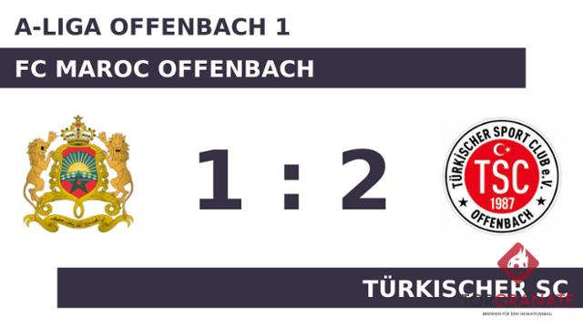 Nach nur 23 Minuten verließ Tarik El Fechtali vom FC Maroc Offenbach das Feld, Hicham Boutaleb kam in die Partie. Torlos ging es zur Halbzeitpause in die Kabinen. In der Pause stellte Türkischer SC personell um: Per Doppelwechsel kamen k. A. und Ali Can Yilmaz auf den Platz und ersetzten Sükrü Ülker und Oguzhan Turak. K.A. k.A. traf zum 1:0 zugunsten des FC Maroc Offenbach (46.). Abdullah Tamac schockte die Heimmannschaft und drehte die Partie mit seinem Doppelpack für Türkischer SC (66./77.). Schließlich sprang für Türkischer SC gegen den FC Maroc Offenbach ein Dreier heraus.