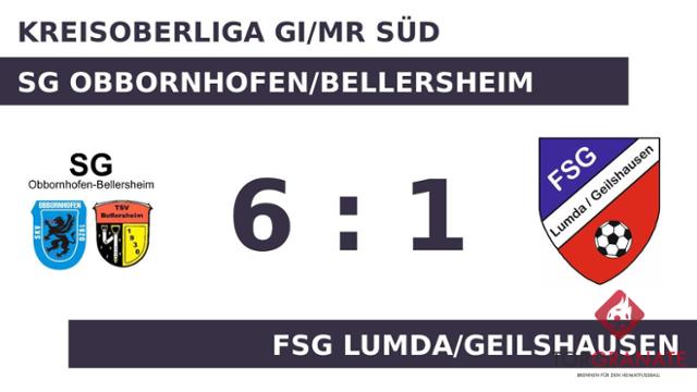 Tim Richter nutzte die Chance für den Spitzenreiter und beförderte in der 39. Minute das Leder zum 1:0 ins Netz. Mit einem Tor Vorsprung für das Obbornh./Bellersh. ging es für die beiden Teams in die Halbzeitpause. Das 2:0 für die SG Obbornhofen/Bellersheim stellte Richter sicher. In der 50. Minute traf er zum zweiten Mal während der Partie. Sebastian Schad vollendete zum dritten Tagestreffer in der 60. Spielminute. Richter überwand den gegnerischen Schlussmann zum 4:0 für das Obbornh./Bellersh. (76.). Vom Elfmeterpunkt erzielte Erik Bender den Ehrentreffer für die FSG Lumda/Geilshausen (79.). Richter beseitigte mit seinen Toren (80./90.) die letzten Zweifel am Sieg der SG Obbornhofen/Bellersheim. Am Ende kam das Obbornh./Bellersh. gegen das Lumda/Geilshausen zu einem verdienten Sieg.